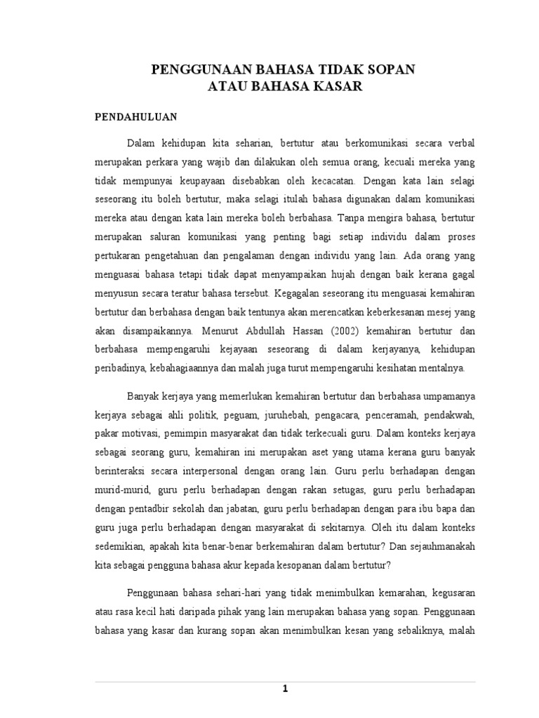 Penggunaan Bahasa Tidak Sopan Atau Bahasa Kasar Pdf