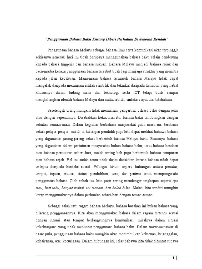 Penggunaan Bahasa Baku Kurang Diberi Perhatian Di Sekolah Rendah Pdf